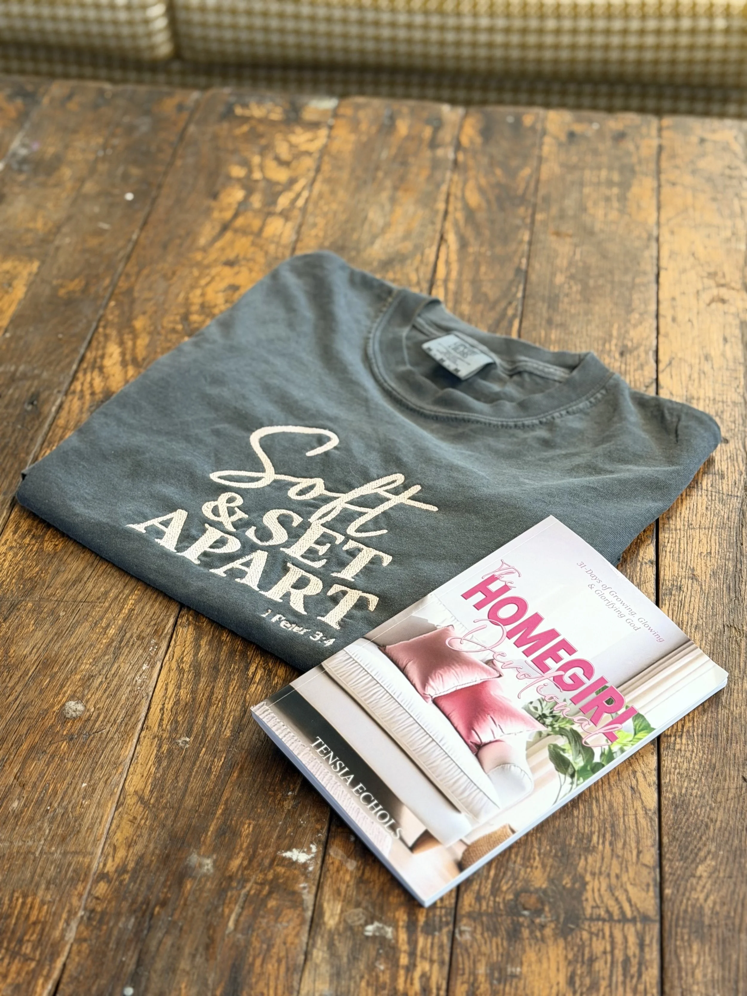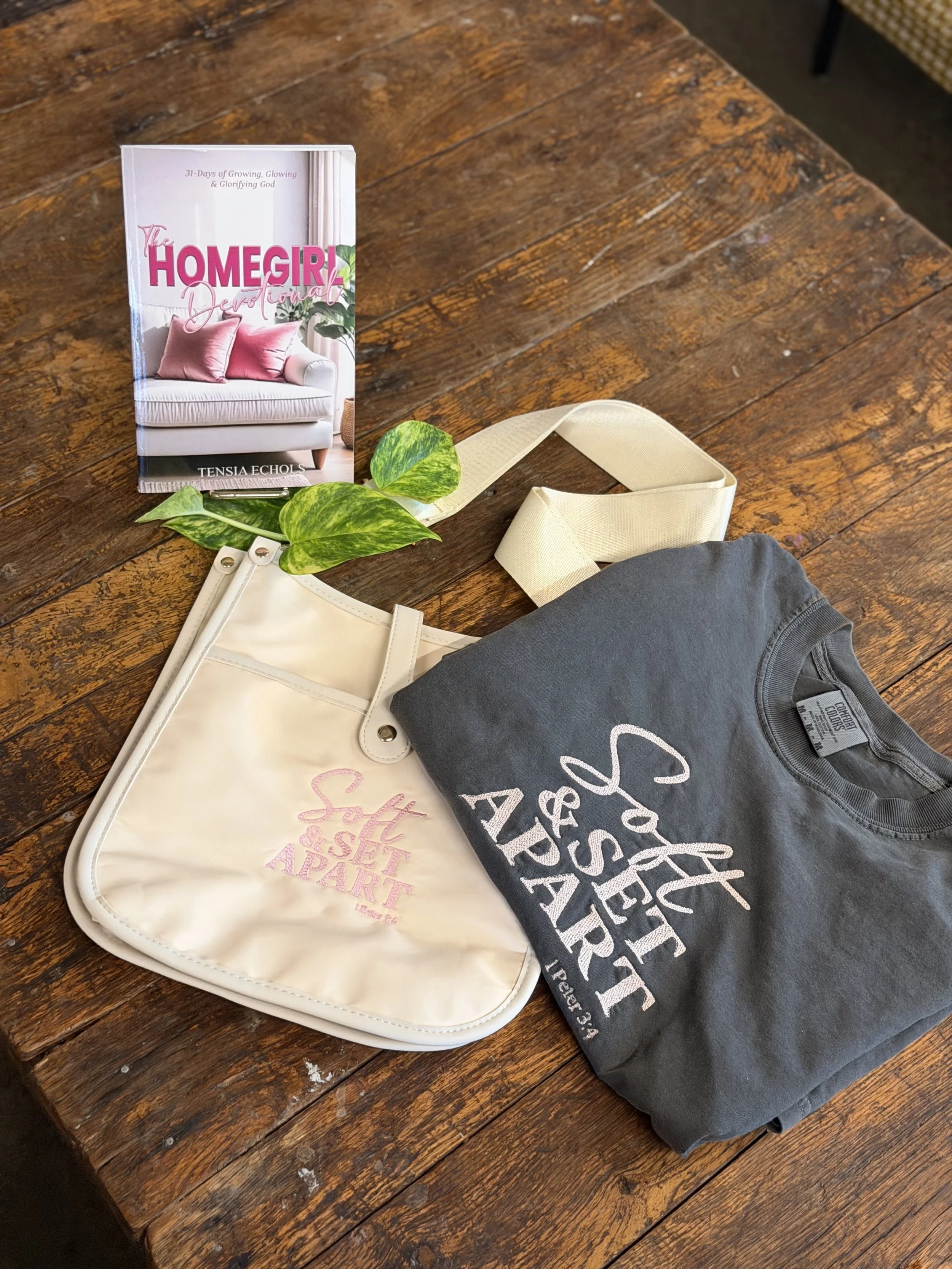 Categories: ALL Clothing & Apparel Books Holiday Gift Sets ALL | Clothing & Apparel | Books | Holiday Gift Sets | Book + Bag + Shirt Set $70.00 Hat + Bag Combo $55.00 Soft and Set Apart Shirt + The Homegirl Devotional Bundle $50.00 Soft and Set Apart Acid Wash Hat $30.00 The "Between Me and God" Journal $14.95 The Homegirl Devotional $14.95 Soft and Set Apart - Acid Wash from $40.00 Soft and Set Apart - Neutral from $35.00